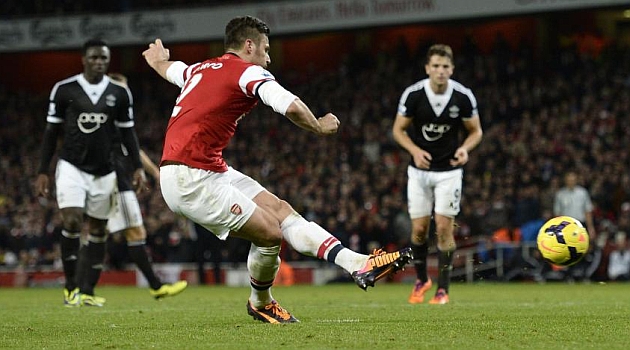 El primer gol de Giroud, llegaría gracias a un error garrafal de Boruc, el portero polaco visitante, que no supo que hacer con el balón en los pies y le regalaría el gol al francés, para que los gunners se adelanten en el marcador en el 21'.